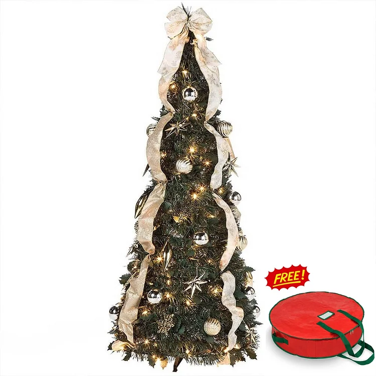 Transform your home into a festive wonderland with the Folding Gold & Silver Christmas Tree in seconds. This pre-lit and fully trimmed tree offers effortless holiday décor—pull it up from the box, and you’re ready to celebrate. No more time-consuming decorating, just instant holiday beauty at your fingertips.